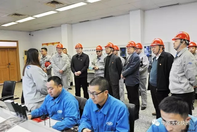 在天然氣化工裝置區(qū),馬富國在聽取了有關(guān)生產(chǎn)裝置的運(yùn)行情況介紹后,又向化肥事業(yè)部的管理人員詳細(xì)詢問了他們?cè)诮?jīng)營管理、員工培訓(xùn)、新產(chǎn)品開發(fā)等方面的好經(jīng)驗(yàn)、好做法,并勉勵(lì)大家不僅要優(yōu)化裝置運(yùn)行,搞好安全生產(chǎn),而且要不斷進(jìn)行知識(shí)更新,開闊眼界,努力開發(fā)出具有高附加值的產(chǎn)品,走高端發(fā)展的道路。在煤化工裝置區(qū),馬富國親切看望了生產(chǎn)一線員工,并對(duì)甲醇裝置長周期運(yùn)行所取得的成績給予了充分肯定,同時(shí)要求甲醇事業(yè)部要安全、環(huán)保一起抓,精心操作,穩(wěn)定運(yùn)行。在中原大化公司展廳,馬富國一行興致勃勃地參觀了公司發(fā)展歷程展覽,并指示中原大化要扎實(shí)做好綠宇公司新三板上市的各項(xiàng)工作,加快推進(jìn)上市步伐。